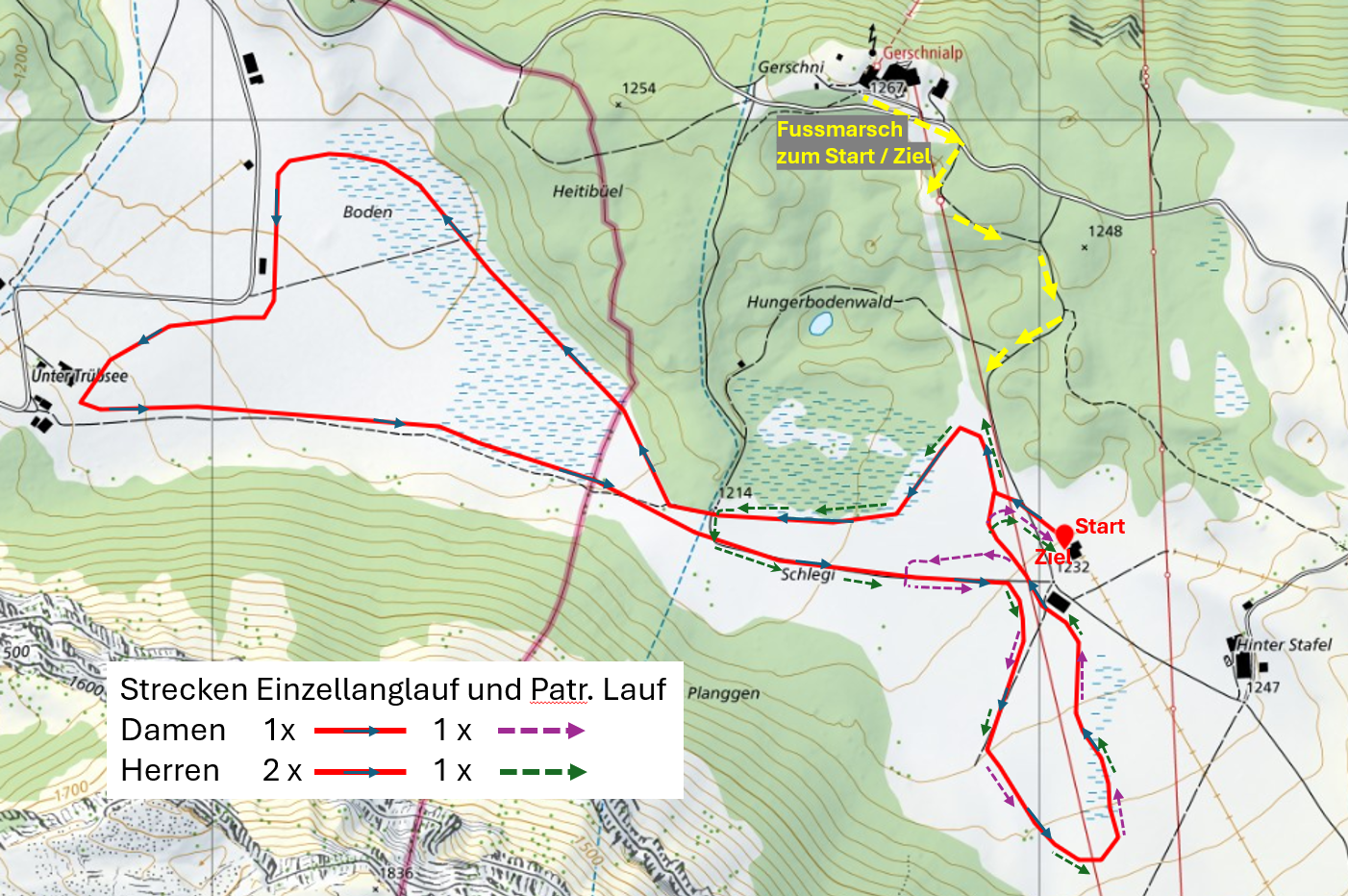 Die Nordischwettkämpfe finden auf der Gerschnialp statt. Nachfolgend ist die Streckenführung auf dem Plan eingezeichnet.